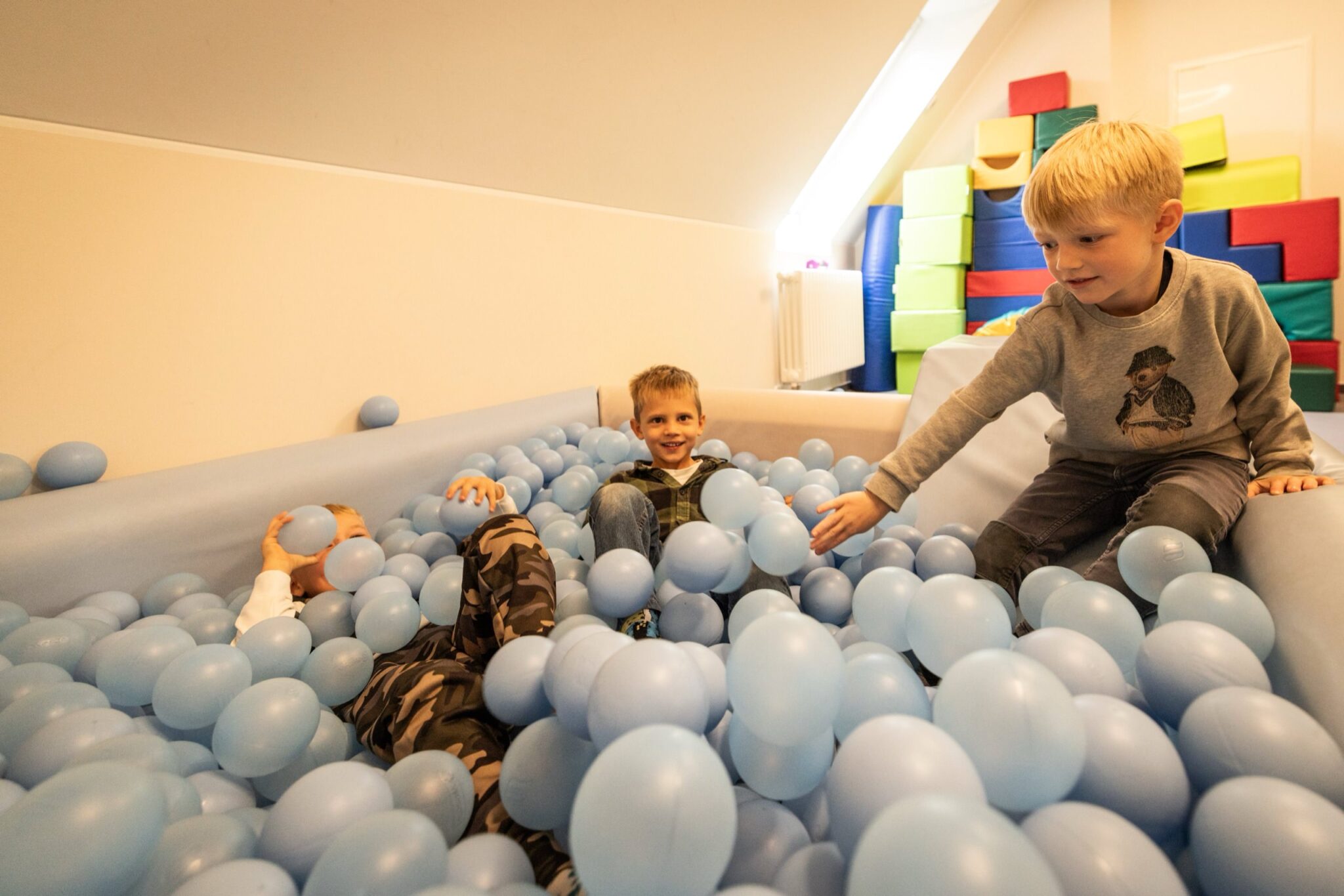 - 2 Krippengruppen (0-3 Jahre), 2 jüngere Kindergartengruppen (ca. 3-4 Jahre) und 2 größere Kindergartengruppen, davon 1 Vorschulgruppe (5-6 Jahre)