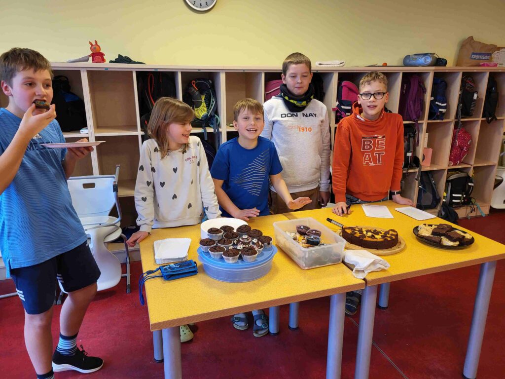 Am 24.Januar 2025 fand der Kuchenbasar statt. Die Kinder der 4.Klassen, die zahlreiche Kuchen mitgebracht hatten, verkauften an mehreren Ständen ihre Kuchen selbst. Zusammen mit den zusätzlichen Spenden kamen am Ende 400 Euro zusammen, welche den Mitarbeiterinnen der Streunerhilfe im Hort von den Kindern übergeben wurde. Darüber hinaus hatten einige Kinder Sachspenden, wie Katzenspielzeug und Futter, mitgebracht.